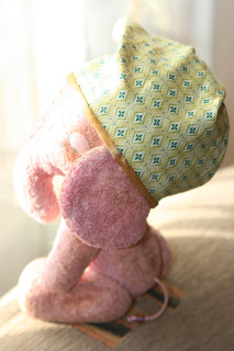 Яша сшит из винтажного плюша, окрашен мной, тонирован кофе и масляной пастелью, имеет 6 шплинтовых соединений, набит холлофайбером и стеклянным гранулятом, хвостик - шнурочек со стеклянной бусинкой.